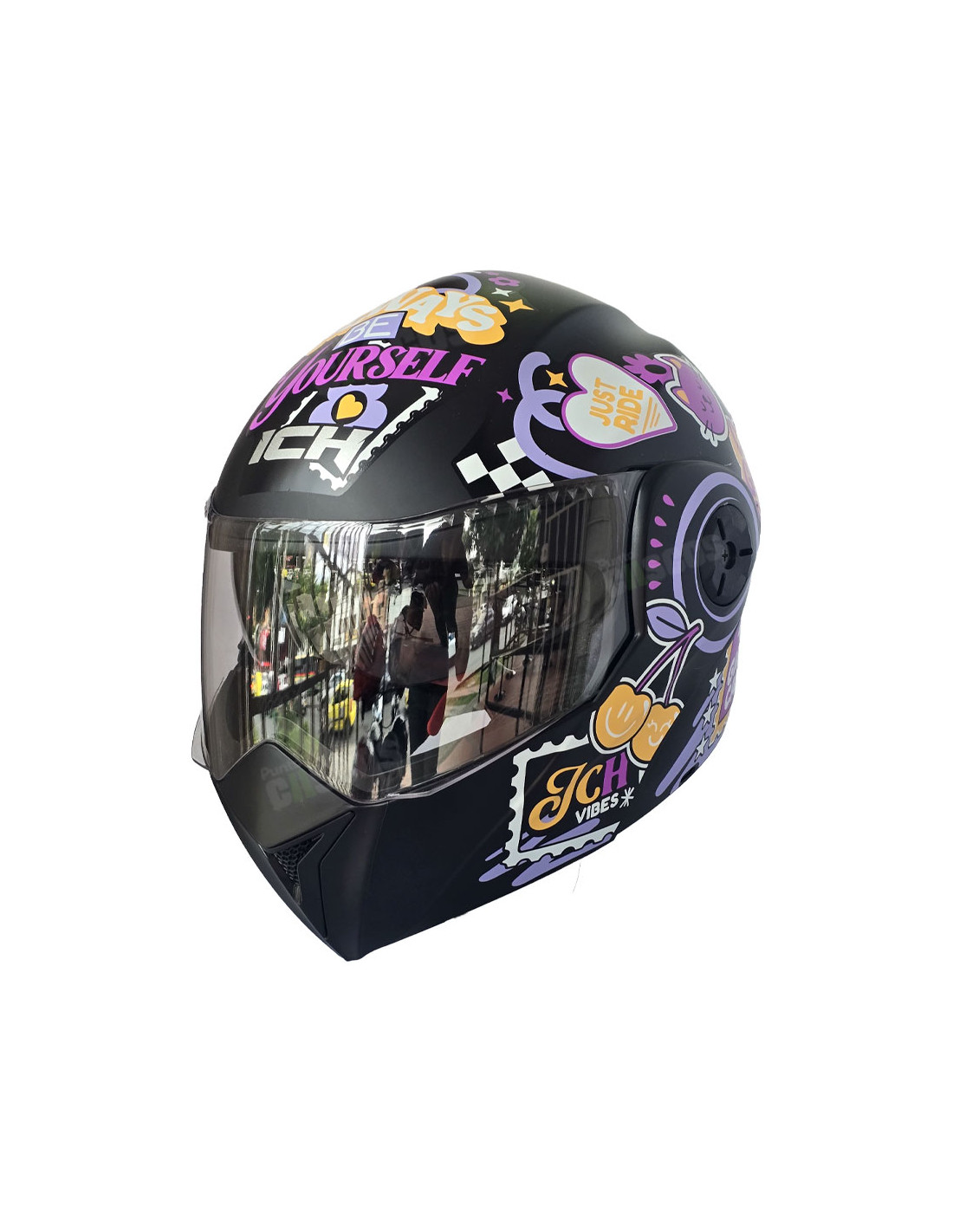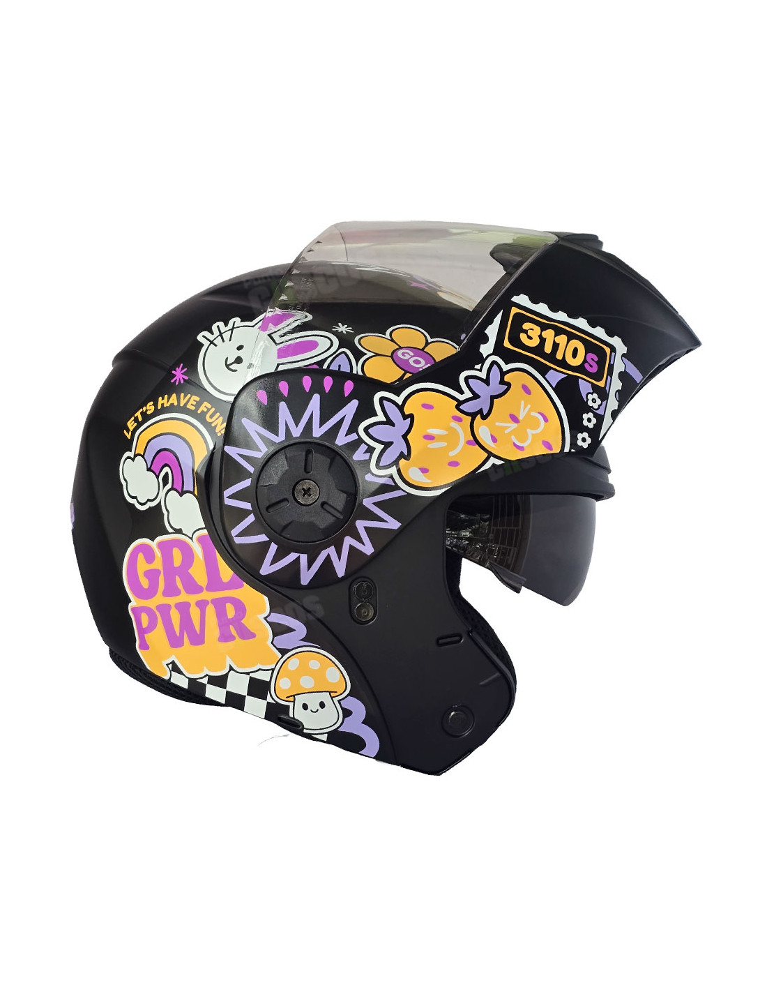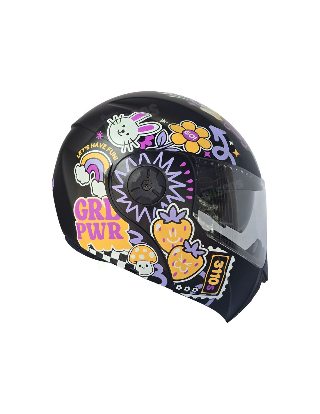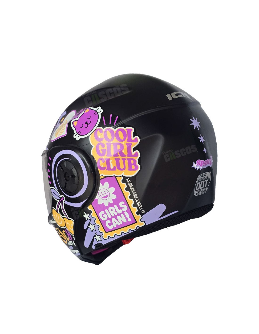El Casco de moto certificado para niña ICH 3110 es Abatible y doble visor. Coraza pequeña y liviana para llevar a tu niña cómoda y segura. Tallaje para tamaño de cabeza infantil entre 51 y 53cm de diámetro.