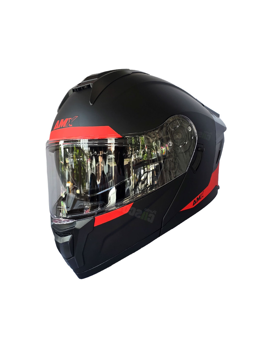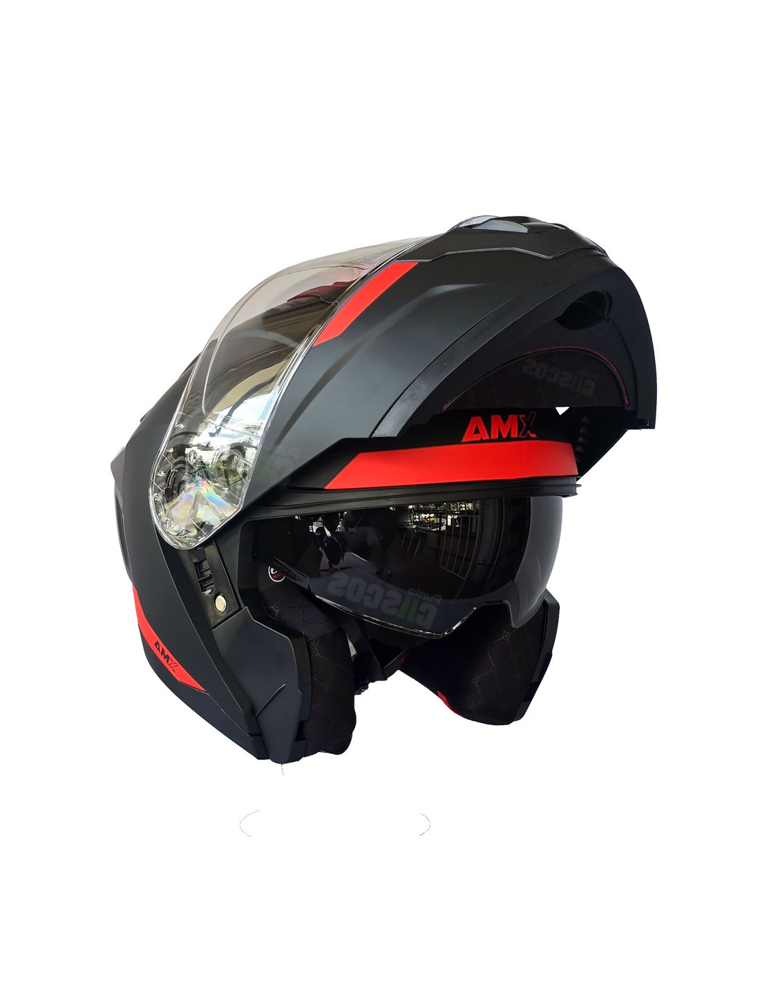 Casco Abatible AMX Nexo Nitro Negro Rojo con luz led