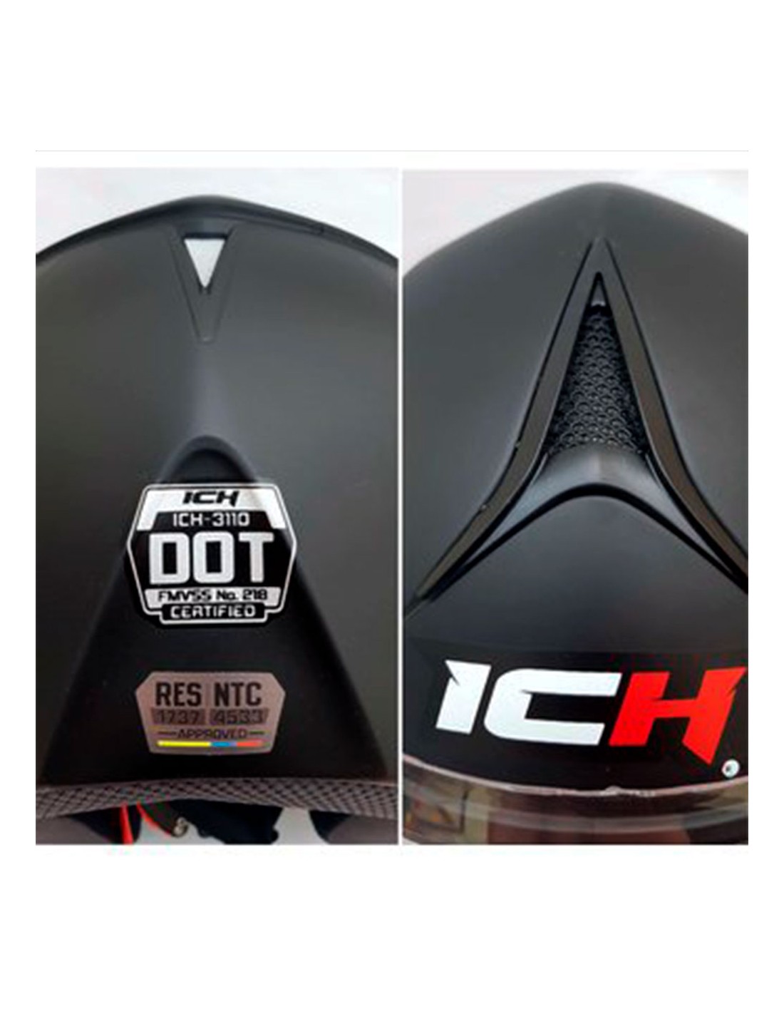 El nuevo ICH 3110 Doble Visor es un casco certificado con la norma NTC 4533 y de producción 100% nacional. Este casco posee una coraza fabricada en ABS (termoplástico de alta resistencia) y el interior contiene poliestireno expandido de alta densidad, haciéndolo tan seguro como liviano. El visor de policarbonato permite tener gran visibilidad sin generar deformaciones de la imagen, además de contar con un visor interno con protección UV para conducir bajo altos niveles de luminosidad. El ICH 3110 Doble Visor posee hebilla micrométrica y correas en poliéster con tejidos en múltiples sentidos, que brindan durabilidad y evitan el estiramiento. Están aseguradas a la coraza mediante dos remaches a cada lado, haciendo de este sistema de retención totalmente seguro. El interior está fabricado en fibras de poliéster, un tejido suave y cómodo para el motociclista. Además, las cacheteras de este casco son desmontables, lo que permite removerlas para su limpieza.