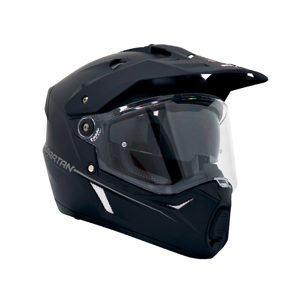 ¿Ciudad, carretera o trocha? El Spartan Wolf Doble Propósito está diseñado para seguirte el ritmo en cualquier tipo de terreno. Este casco doble visor combina lo mejor del mundo urbano y off-road, convirtiéndose en tu aliado ideal para cada aventura, sin importar a dónde te lleve la ruta.