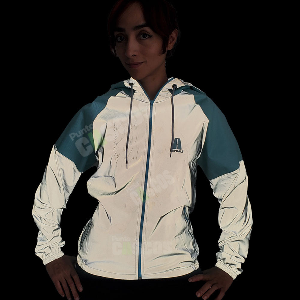 Con esta chaqueta corta vientos reflectiva sí que te haces ver bien. No solo por la llamativa tela 100% reflectiva con diseño que te hará brillar en la noche, si no también por su diseño con insertos en tela resistente...