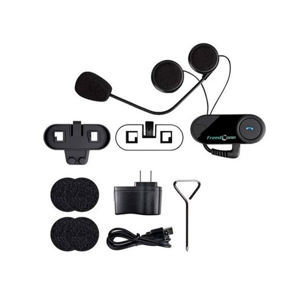 Incluye intercomunicador, audífonos, micrófono suave y rígido, soportes, adhesivos, cable de carga y accesorios de instalación.