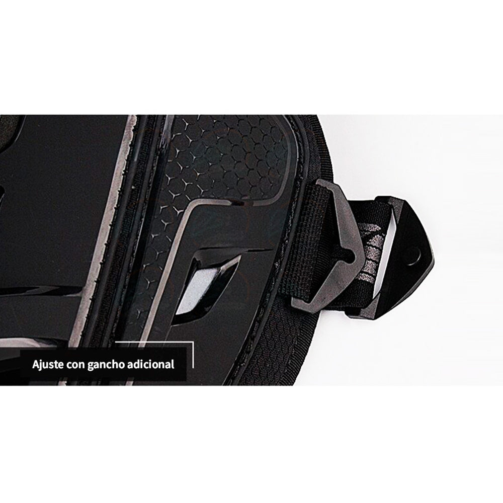 El diseño avanzado de las rodilleras y coderas incluye un sistema de ventilación eficiente con dos mallas metálicas en la parte superior y cinco en la central, manteniendo tus articulaciones frescas. La estructura gira entre 180° y 45°, permitiendo una movilidad cómoda y natural.