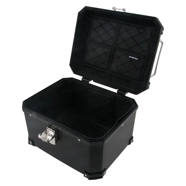 El Maletero Spartan 45L es ideal para quienes necesitan amplio espacio sin sacrificar seguridad ni estilo. Resistente a impactos, con chapa en acero inoxidable y forro interno acolchado de lujo con bolsillos y espaldar incluido, está listo para acompañarte en el trabajo diario o en tus viajes largos con total confianza.