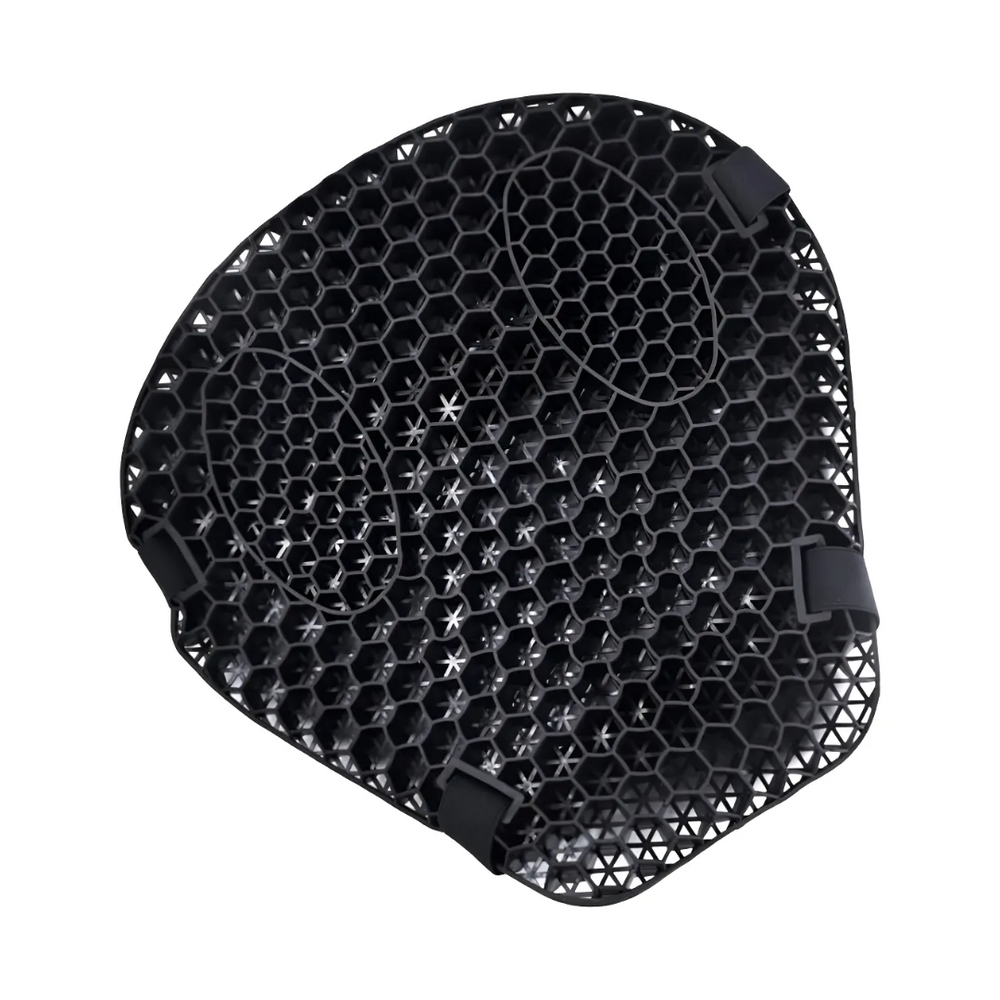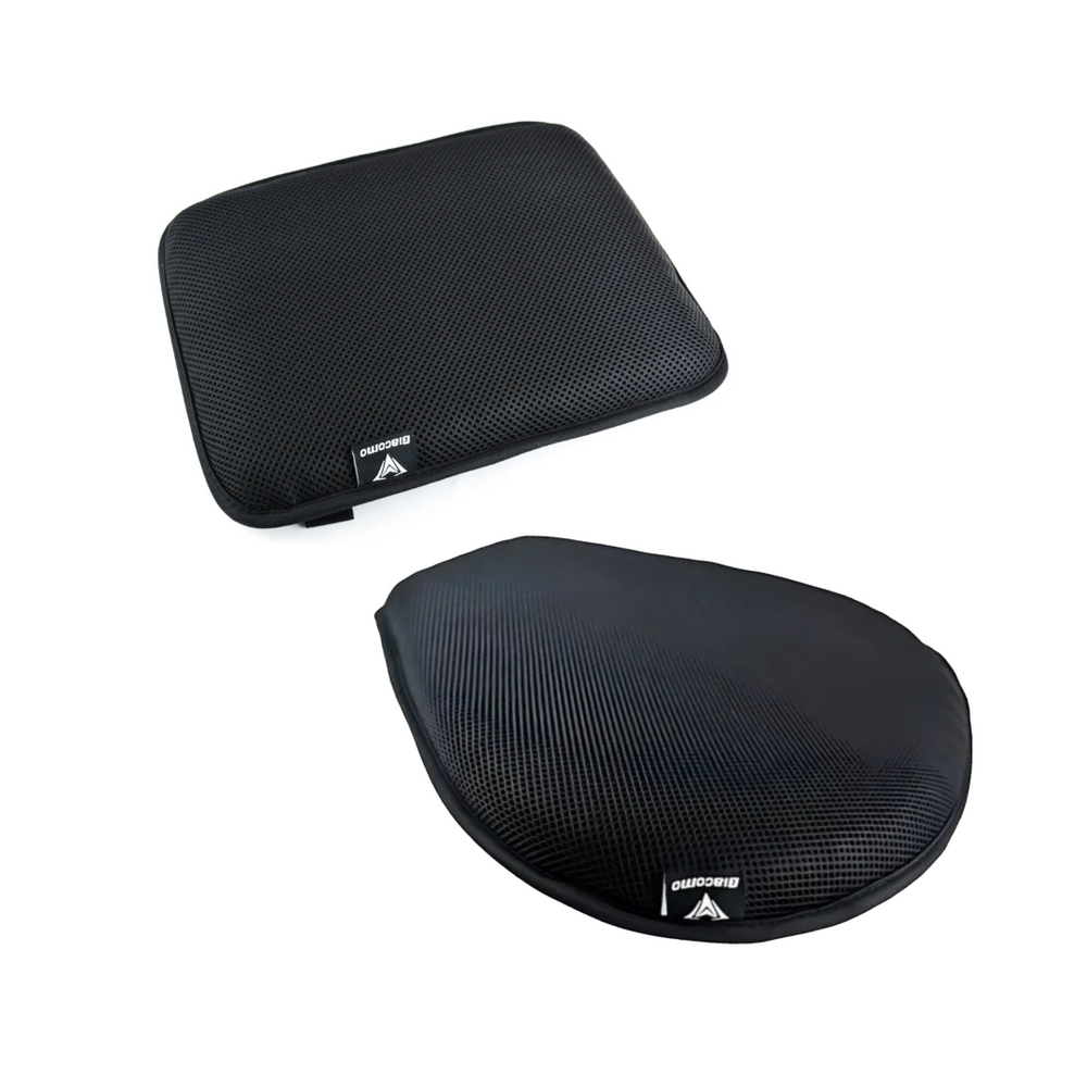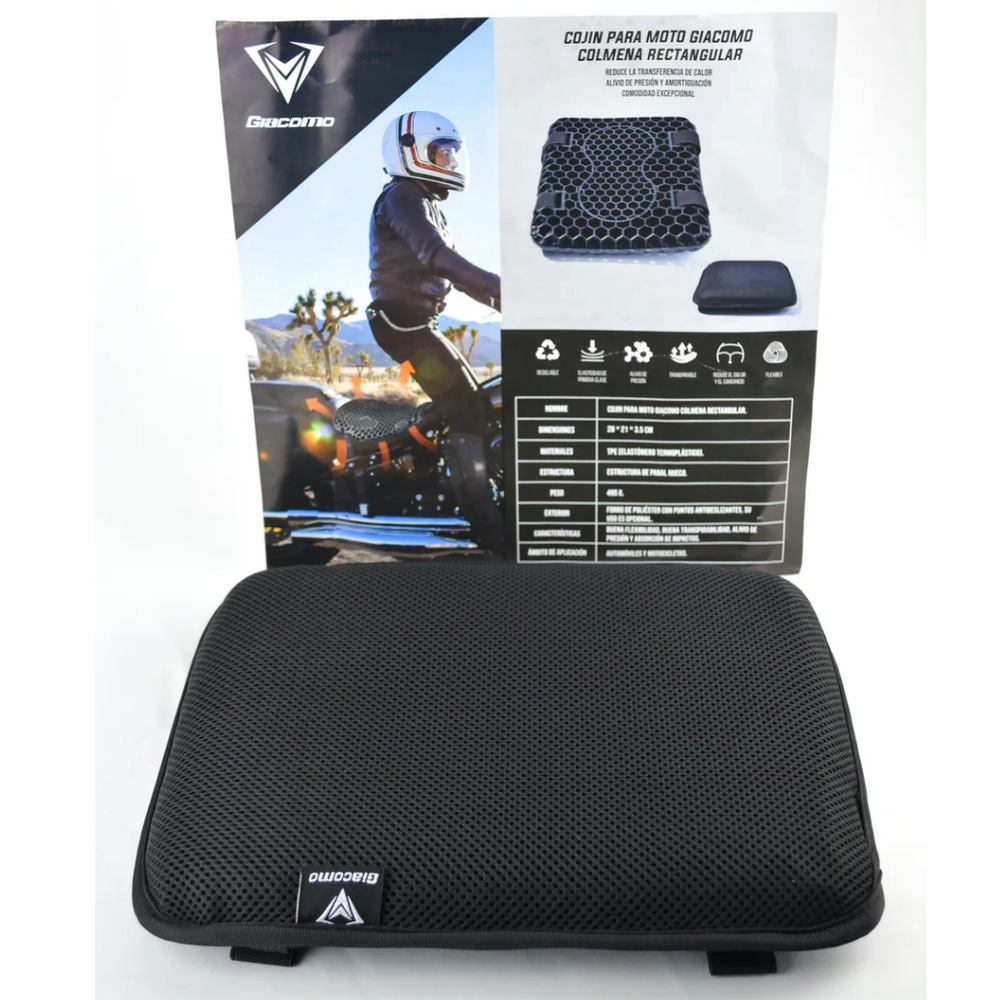 El Pack Doble Confort Giacomo incluye cojines en silicona para piloto y copiloto, con diseño en panal que alivia la presión, reduce impactos y mejora la ventilación. Se ajustan fácilmente con correas y forros antideslizantes. Ideal para viajes largos sin incomodidades.