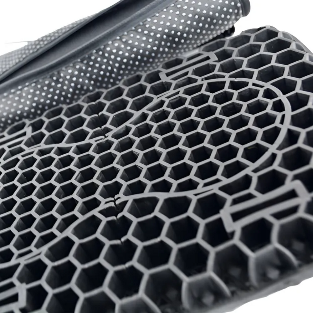 Ambos fabricados en TPE (elastómero termoplástico), con estructura de panal hueca, excelente flexibilidad, ventilación, absorción de impactos y alivio de presión.